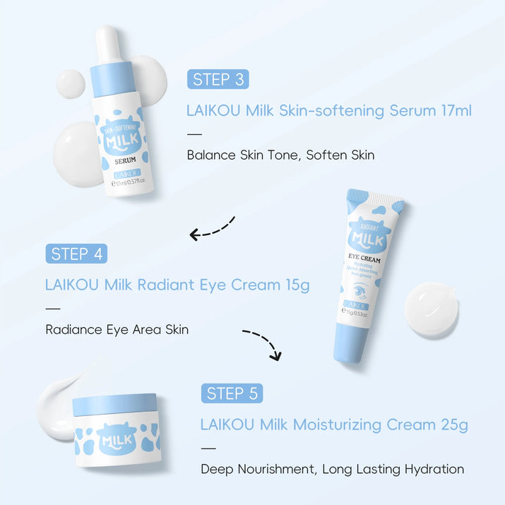 Are you ready to transform your skincare routine? The LAIKOU Milk Glow Set delivers deep hydration and brightening benefits, ensuring your skin looks fresh and radiant all day long.